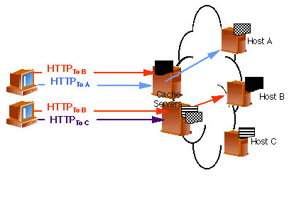 4) Cache Deployment Options Caching systems generally use one of three deployment options to ensure that requests for Web pages go to the cache and not the server hosting the content. The first option is called proxy caching. With proxy caching, browsers are configured to send requests for Web pages directly to the cache instead of to the Web server hosting the content. The second option is called transparent proxy caching. With transparent proxy caching, browsers send requests for Web pages to the Web server hosting the content, as usual. The cache itself sits in the data path, examines all packets bound for the Internet, intercepting and servicing the Web traffic. In this case, the cache must be physically located somewhere in the data path, usually around the last router hop before the WAN. This requires that the cache be configured as a router hop or that the clients be configured to use the cache as their default router. If this approach is used in enterprise environments, it's best to put the cache as close to the WAN as possible so that intranet traffic can be served from the hosting servers and not the cache. The third option is another form of transparent proxy caching that adds a component called a Web cache redirector. Transparent proxy caching with Web cache redirection removes the cache from the data path. Another device, usually a LAN switch or router running special software, sits in the data path, examines all packets bound for the Internet, intercepts the Web traffic and sends it to the cache for processing. As with plain transparent proxy caching, in enterprise environments it's best to put the Web cache redirector as close to the WAN as possible so that intranet traffic can be served from the hosting servers and not the cache. In the following sections, we'll take a closer look at each of these options and their pros and cons vis-à-vis the ideal caching solution outlined earlier. 4.1 Proxy Caching As shown in Figure 2, below, with proxy caching all requests for Web pages are sent to the IP address of the cache. For example, the client on the upper left has its browser configured to point all HTTP traffic to IP address X, belonging to the cache in the upper middle of the drawing. If the client on the upper left requests the solid or striped Web pages, the request can be serviced from the cache. If it requests the hatched Web page, the cache must send a request to host A to retrieve the information. ![]() This approach has some advantages. First, because the clients point all Web requests (and only Web requests) directly to the cache, there is no impact on non-Web traffic. (Compare this to transparent proxy caching where the cache or a redirector must sit in the data path and look at all traffic to determine which is Web traffic.) Second, incremental hardware and software costs are limited to the server running the cache and the caching software. Depending on the specifics of the solution, these items may be purchased separately or as a bundle. Third, administration on the caches is limited to basic configuration and no administration is required on intermediate systems because none are involved. However, client administration is a major disadvantage of proxy caching because every browser must be configured to point to the cache. As noted earlier, the amount of administration needed on the browsers has a huge impact on the overall administrative burden because there are many more browsers than there are caches or intermediate systems. Browser configuration is burdensome in a corporate environment but can be somewhat automated in some cases. It's nearly impossible in an ISP environment, where the ISP has no control over the desktop. Another major disadvantage of proxy caching is that each client can hit only one cache server, even if multiple caches have been deployed for scalability. As shown in the Figure 2, above, if multiple caches are deployed and proxy caching is used, the browsers must be configured such that some browsers point to one cache and other browsers to another cache. The fact that each browser points to a specific cache leads to a number of undesirable consequences. First, the content that a user desires may be cached in the local network but not in the cache to which the user's browser points. For example, in Figure 2, the client on the lower left wants access to the solid Web page. It is not on cache Y but is on cache X. Unfortunately, the client's browser is pointed to cache Y and can't get the Web page from it, resulting in a cache miss. The result of the cache miss is a lower hit rate, incremental WAN traffic and increased user delay. Some of these disadvantages can be avoided if the caches use a cache-to-cache handoff protocol. However, this functionality is not available on all caching systems. Second, proxy caching leads to unnecessary duplication of data. For example, Figure 2 illustrates the case where clients pointed to cache X and clients pointed at cache Y have requested the blue Web page. Since the proxy caches generally cannot redirect requests for content to other caches, the blue Web page is stored on both caches, leading to unnecessary duplication of data. Third, additional user delay and data duplication occurs because all Web traffic, including intranet traffic, must be serviced by the cache. While caching is good in cases where it prevents traffic from crossing the Internet, it can be a bottleneck in cases where the content is otherwise available in the local network. Finally, proxy caching can cause unnecessary downtime. If a user's browser points to a cache that is down, then the user as no Web access until their browser is reconfigured or the cache returns to service. 4.2 Transparent Proxy Caching Transparent proxy maintains several important benefits of proxy caching. Since no intermediate systems are required, incremental hardware and software costs are limited to the cost of the server running the cache and the caching softwar