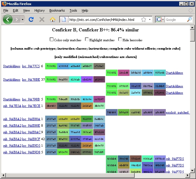 particular, we found that out of 297 subroutines in Conficker B, only 3