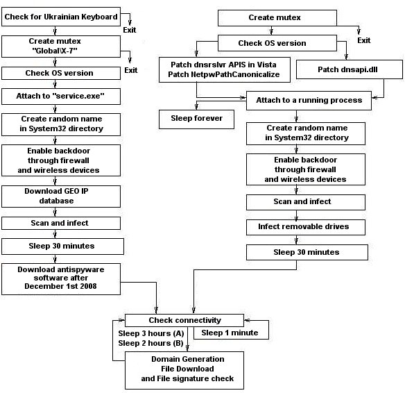 - * A static analysis of Conficker A and B. We dissect its top level control flow, capabilities, and timers.