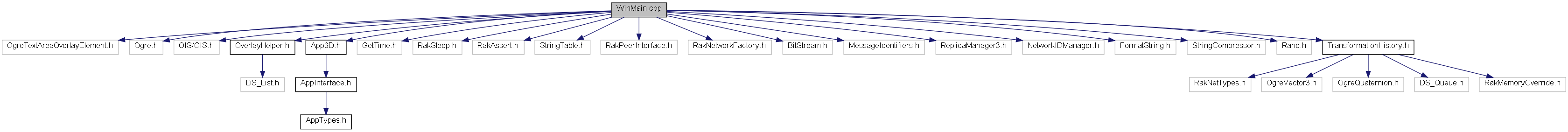 #include "OgreTextAreaOverlayElement.h"#include "Ogre.h"#include <OIS/OIS.h>#include "OverlayHelper.h"#include "App3D.h"#include "GetTime.h"#include "RakSleep.h"#include "RakAssert.h"#include "StringTable.h"#include "RakPeerInterface.h"#include "RakNetworkFactory.h"#include "BitStream.h"#include "MessageIdentifiers.h"#include "ReplicaManager3.h"#include "NetworkIDManager.h"#include "FormatString.h"#include "StringCompressor.h"#include "Rand.h"#include "TransformationHistory.h"