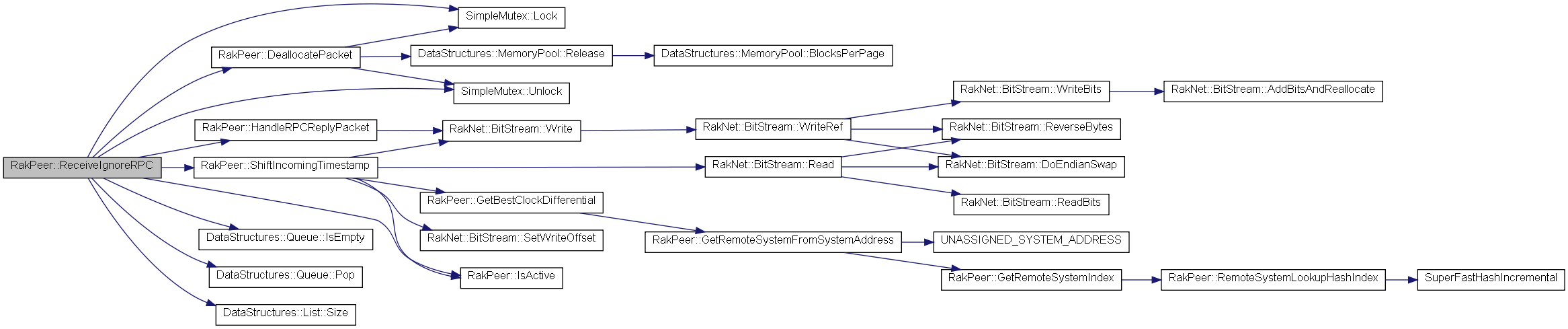 | bool | RPC (const char *uniqueID, const RakNet::BitStream *bitStream, PacketPriority priority, PacketReliability reliability, char orderingChannel, const AddressOrGUID systemIdentifier, bool broadcast, RakNetTime *includedTimestamp, NetworkID networkID, RakNet::BitStream *replyFromTarget) |