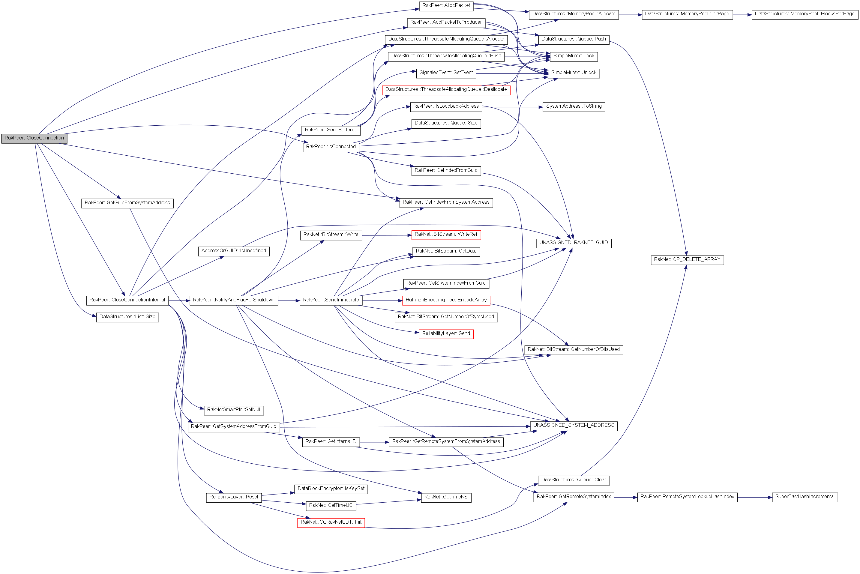 | void | CloseConnection (const SystemAddress target, bool sendDisconnectionNotification, unsigned char orderingChannel=0, PacketPriority disconnectionNotificationPriority=LOW_PRIORITY) |
