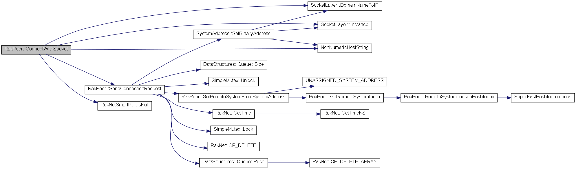 | virtual bool | ConnectWithSocket (const char *host, unsigned short remotePort, const char *passwordData, int passwordDataLength, RakNetSmartPtr< RakNetSocket > socket, unsigned sendConnectionAttemptCount=12, unsigned timeBetweenSendConnectionAttemptsMS=500, RakNetTime timeoutTime=0) |
