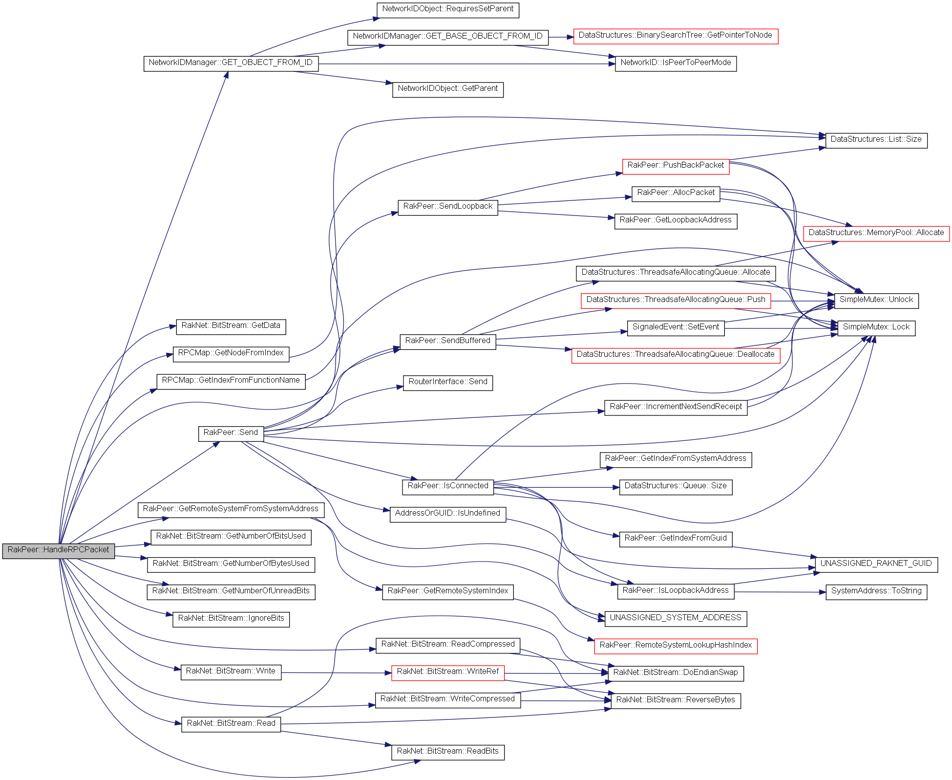 | bool | RPC (const char *uniqueID, const char *data, BitSize_t bitLength, PacketPriority priority, PacketReliability reliability, char orderingChannel, const AddressOrGUID systemIdentifier, bool broadcast, RakNetTime *includedTimestamp, NetworkID networkID, RakNet::BitStream *replyFromTarget) |