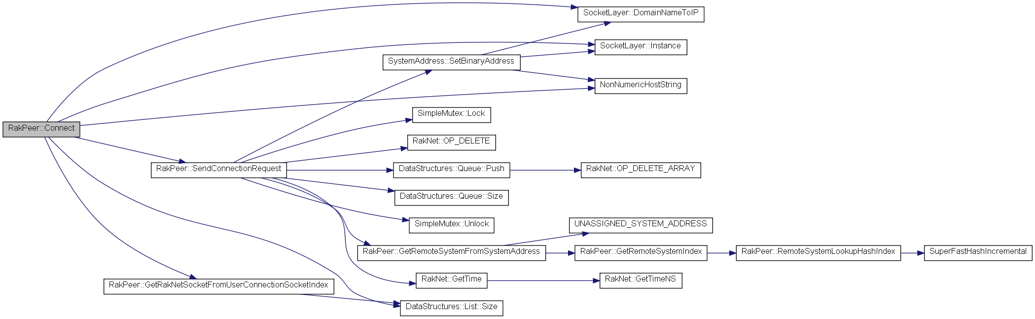 | bool | Connect (const char *host, unsigned short remotePort, const char *passwordData, int passwordDataLength, unsigned connectionSocketIndex=0, unsigned sendConnectionAttemptCount=12, unsigned timeBetweenSendConnectionAttemptsMS=500, RakNetTime timeoutTime=0) |