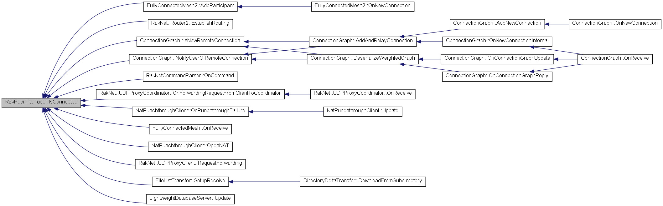 virtual bool | IsConnected (const AddressOrGUID systemIdentifier, bool includeInProgress=false, bool includeDisconnecting=false)=0 |