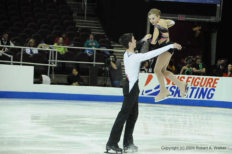 Morgan Agster / Adam Civiello DSC_0503.JPG 2009 US Figure Skating Championships / Cleveland OH / 19 January 2009 / Novice Pairs Short Program / Group 1 Monday 1/19/09 10:30:56 AM Cleveland OH USA NIKON D300, 1/640s @ f/5.6, iso 3200, 0.0 ev, 112 mm |